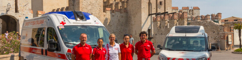 La Croce Rossa Italiana davanti al Castello di Sirmione